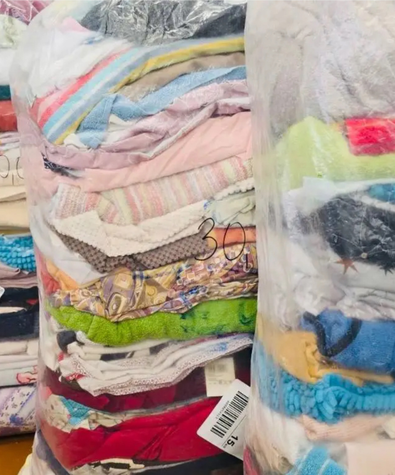 Kotid sisaldavad kasutatud või vähekasutatud voodipesu, rätikuid, linikud, tekid, kardinad, bleedid, laudlinad jpm